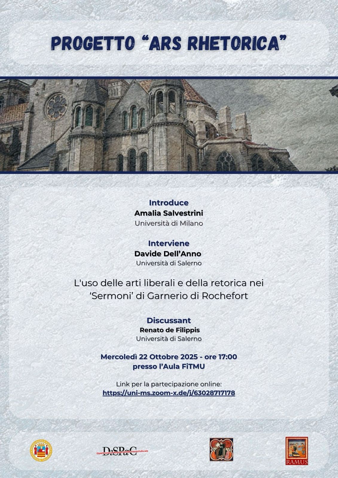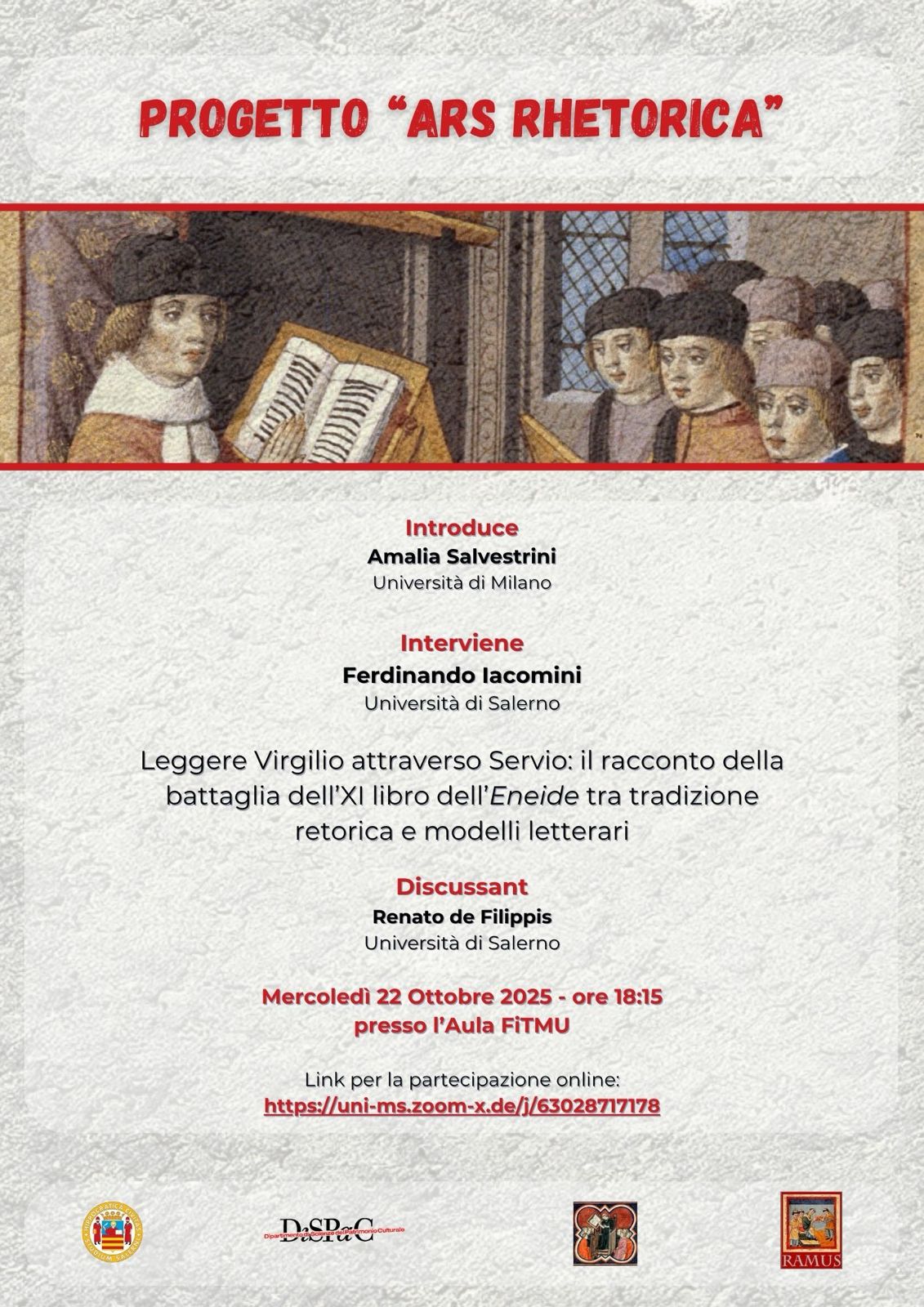 Il prossimo incontro di Ars rhetorica si terrà il 22 ottobre 2025, all’Univesità di Salerno e Online, dalle ore 17:00