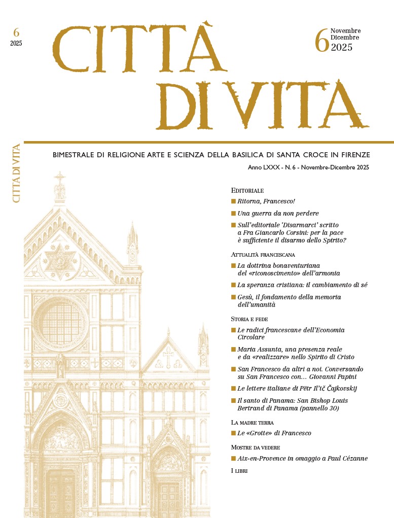 Nell’ambito delle pubblicazioni della rivista “Città di Vita”, diretta da frate Giancarlo Corsini (Santa Croce, Firenze), a partire dal terzo fascicolo 2025 ha preso avvio una Rubrica di una serie di studi dedicata a “I sensi dell’armonia nel pensiero francescano” a cura di Amalia Salvestrini.