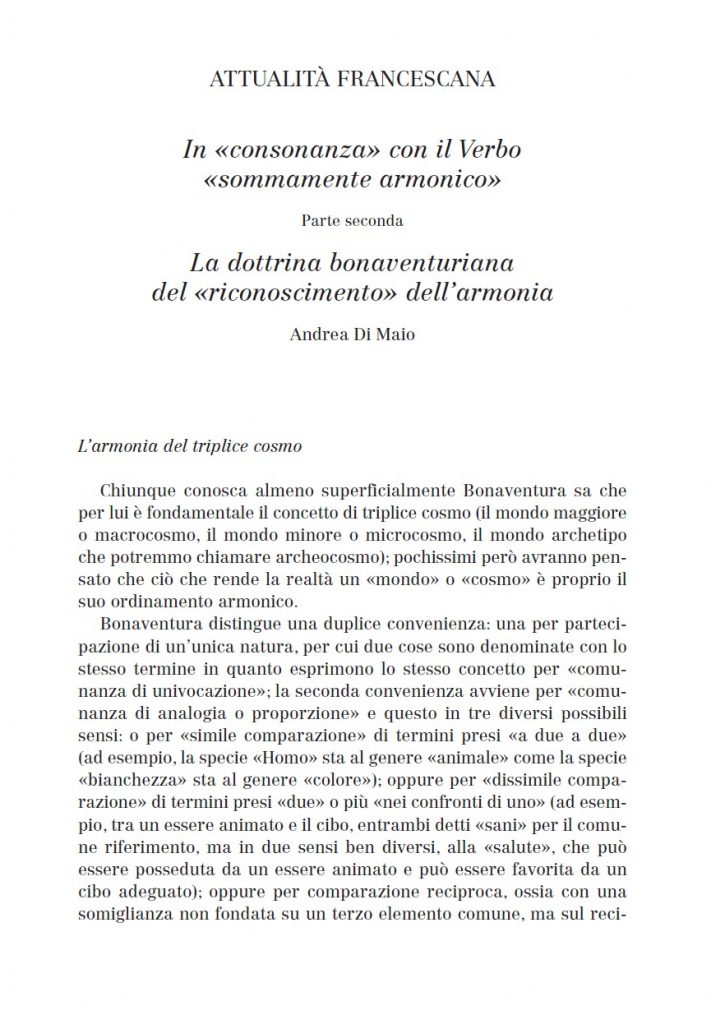 - In «consonanza» con il verbo «sommamente armonico». Parte prima: Il concetto bonaventuriano di armonia (Andrea di Maio)